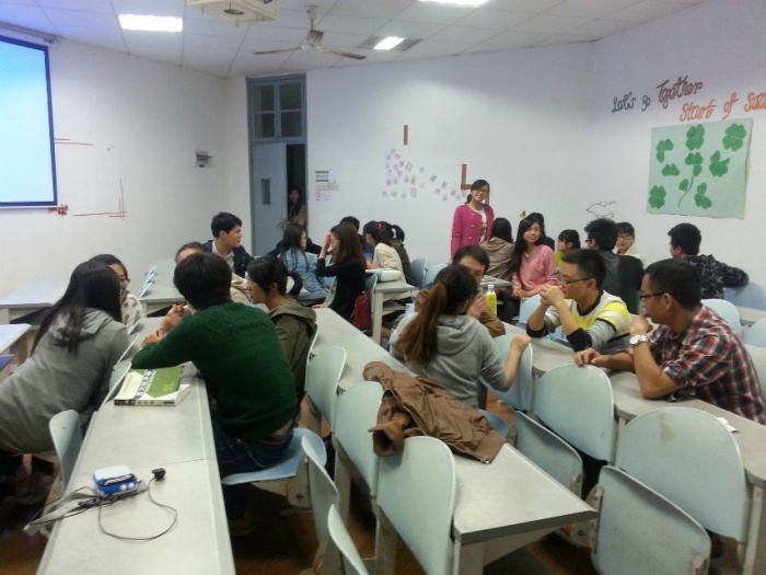 由于中心采取全英教学,同学们迫切需要提高口语水平。“英语角”的成立不仅展示了同学们自觉学习的积极热情,也促进了同学们之间的交流,有利于提高大家的口语水平,促进大家对英语的热爱,更好的适应中心全英教学模式。