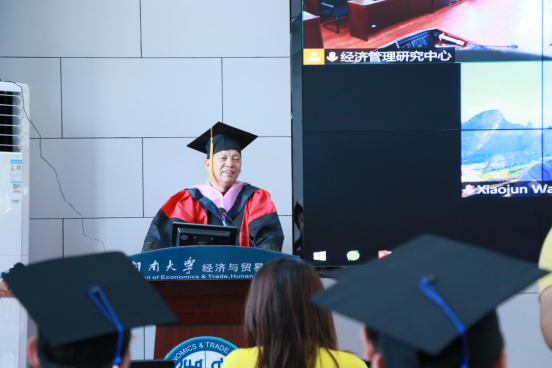 At 15:00 in the afternoon, the 2021 graduates, three representatives of the 2020 graduates, all faculty and staff participated in the degree award ceremony of the CEFMS. The host Professor Yaqin Su, secretary Professor Hu Zongyi, and all the full-time professors take turns to give speech to the graduates. The visiting professors who were unable to attend the graduation ceremony due to the epidemic also expressed their pride in the achievements of the graduates. They encouraged the students to learn to care for themselves and calmly deal with various challenges in life and work. Later, the representatives of the doctoral graduates and the master’s graduates spoke successively, expressing their gratitude to the teachers of CEFMS, classmates and friends. During their studies at CEFMS, the graduates have improved their academic aptitude and cognitive ability, cultivated the ability of solving difficult problems, gained growth and friendship. Finally, Professor Haizheng Li made a concluding remark, congratulating the graduates on successfully completing their studies, and wishing everyone to find simple happiness and embrace the world in a world full of uncertainties. The degree-granting ceremony officially started at 16:00 pm. Professor Haizheng Li issued graduation certificates and took photos with the graduates.