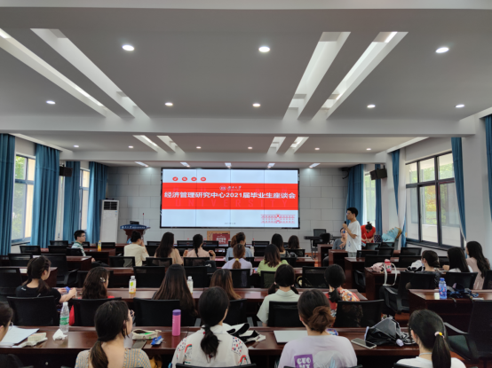 The 2021 Graduates Symposium of the Center for Economics, Finance, and Management Studies (CEFMS) was held at 13:30 on June 16 in the Conference Room 201 of the Economics and Trade Building. Professor Yaqin Su hosted the meeting. The 2020 and 2021 graduates shared their study experience and employment outcomes to their teachers and peers. They addressed the students' concerns about the school experience, internship and employment experience, and how to balance employment and academic work in the Center for the 2019 and 2020 students.