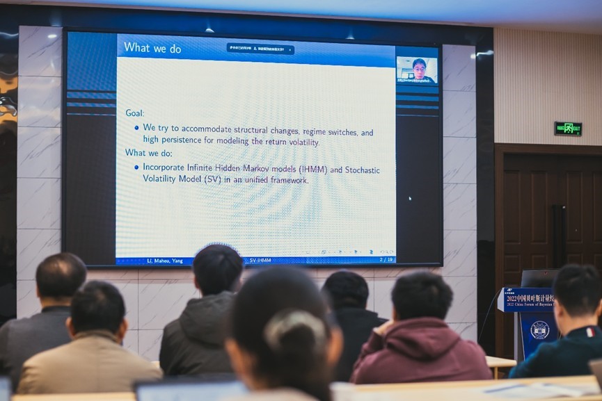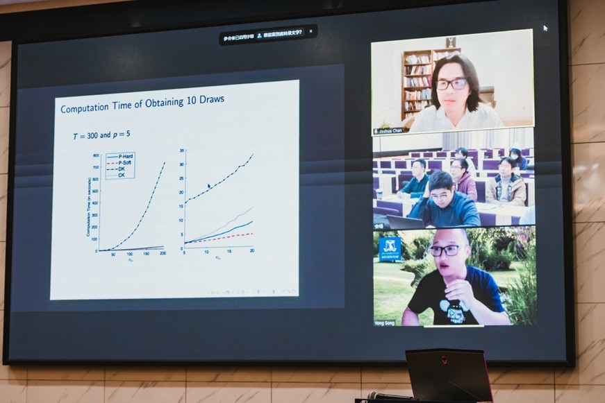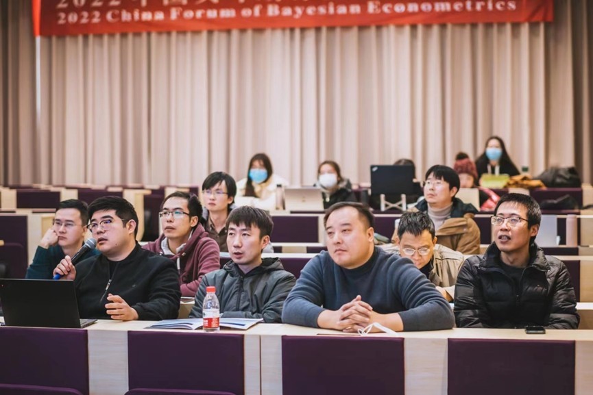 、华南理工大学、吉林大学等国内著名高校,与美国、英国、澳大利亚、新加坡等国家的高校和研究机构,以及部分业界从事贝叶斯计量经济学领域专家学者的多篇学术论文;共吸引 20 余名来自国际、国内的专家学者以线上、线下等形式作学术报告,近百名国内外学者师生通过线上、线下方式参会。现场观众及嘉宾对论文分享内容进行深入讨论交流,气氛热烈。